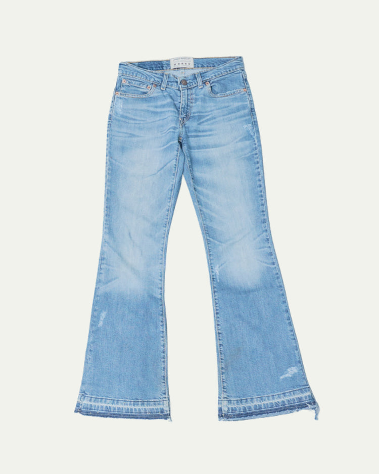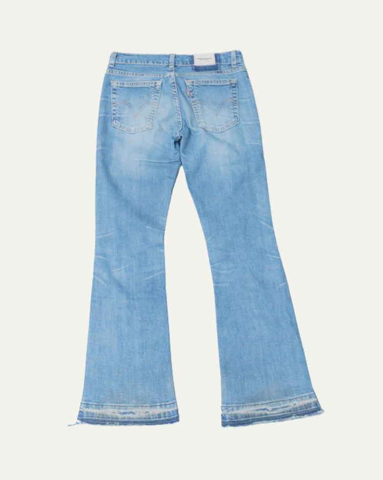 Our Trasher denim is constructed using vintage denim. Pairs are handpicked for their wash and detail. They are then washed and cut.