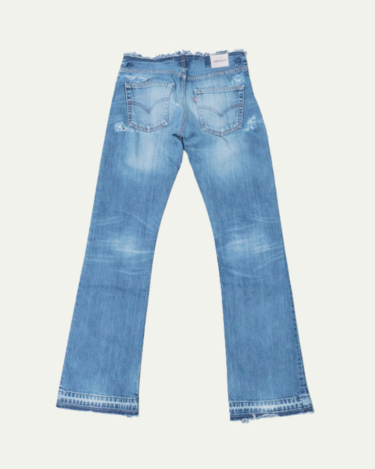 Our Trasher denim is constructed using vintage denim. Pairs are handpicked for their wash and detail. They are then washed and cut.
