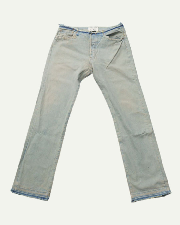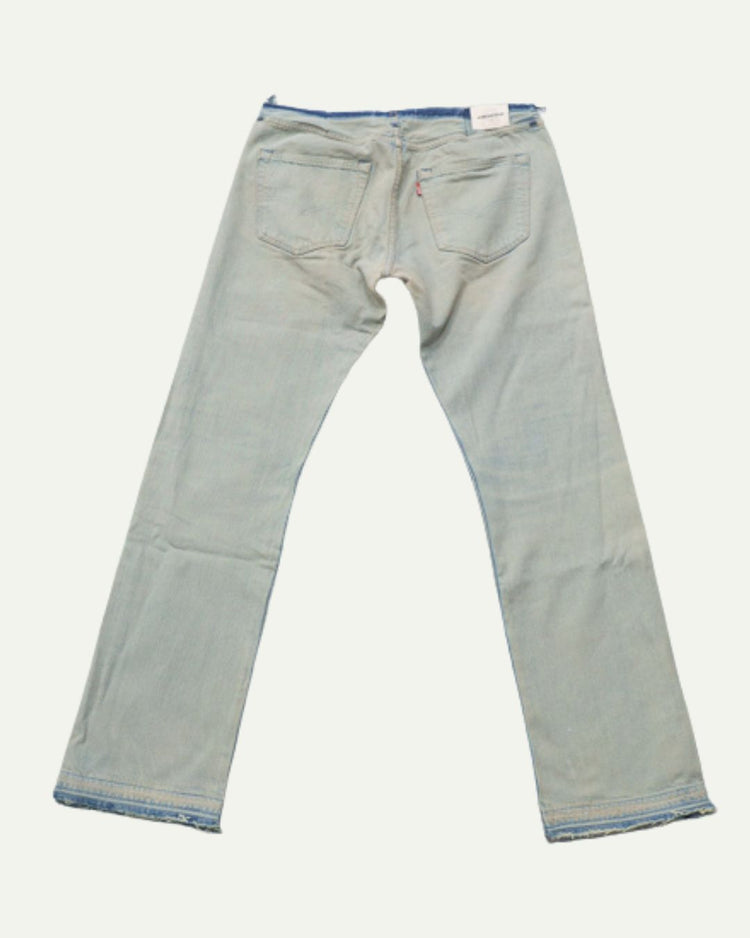 Our Trasher denim is constructed using vintage denim. Pairs are handpicked for their wash and detail. They are then washed and cut.