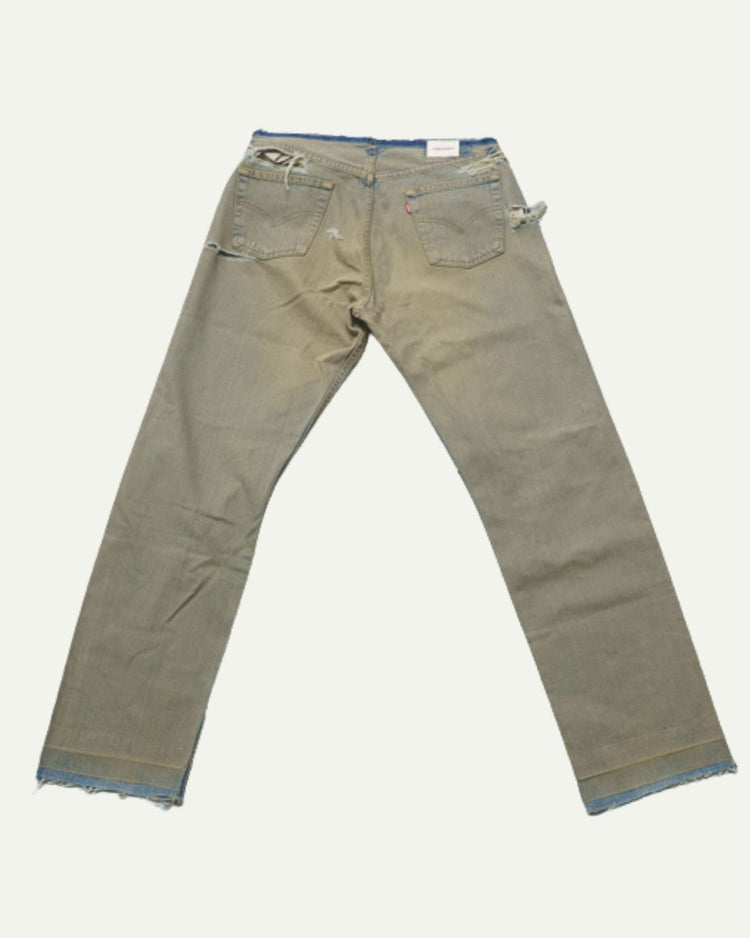Our Trasher denim is constructed using vintage denim. Pairs are handpicked for their wash and detail. They are then washed and cut.