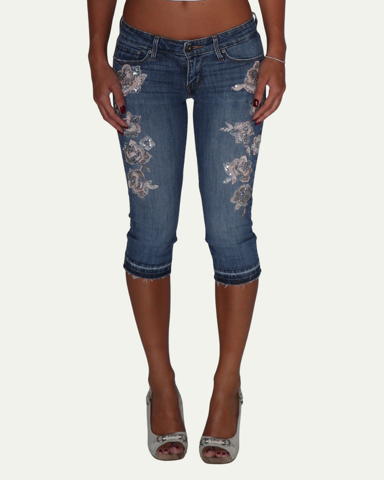 Crafted from handpicked vintage denim, every pair features custom embellishments that are individually cut and meticulously hand-stitched in our London studio. No two designs are alike, making each piece truly unique.